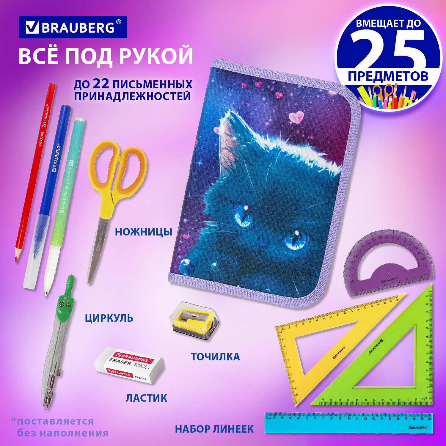 Пенал BRAUBERG, 1 отделение, 1 откидная планка, полиэстер, 21х14 см, "Anime cat", 272322, в комплекте 1шт информация: