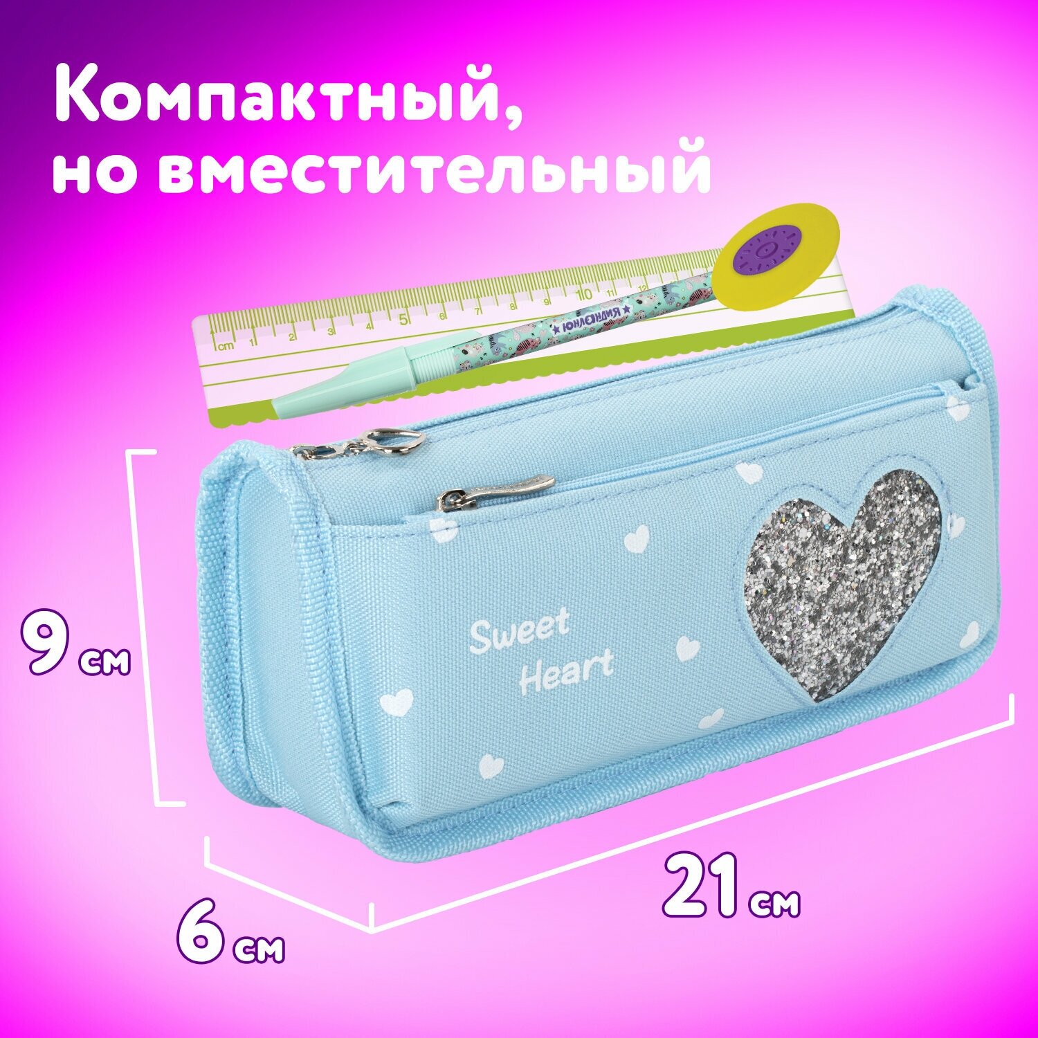 Комплект 10 шт, Пенал-косметичка юнландия, 2 отделения, полиэстер, "Heart", мятный, 21х6х9 см, 270257 6 092 ₽