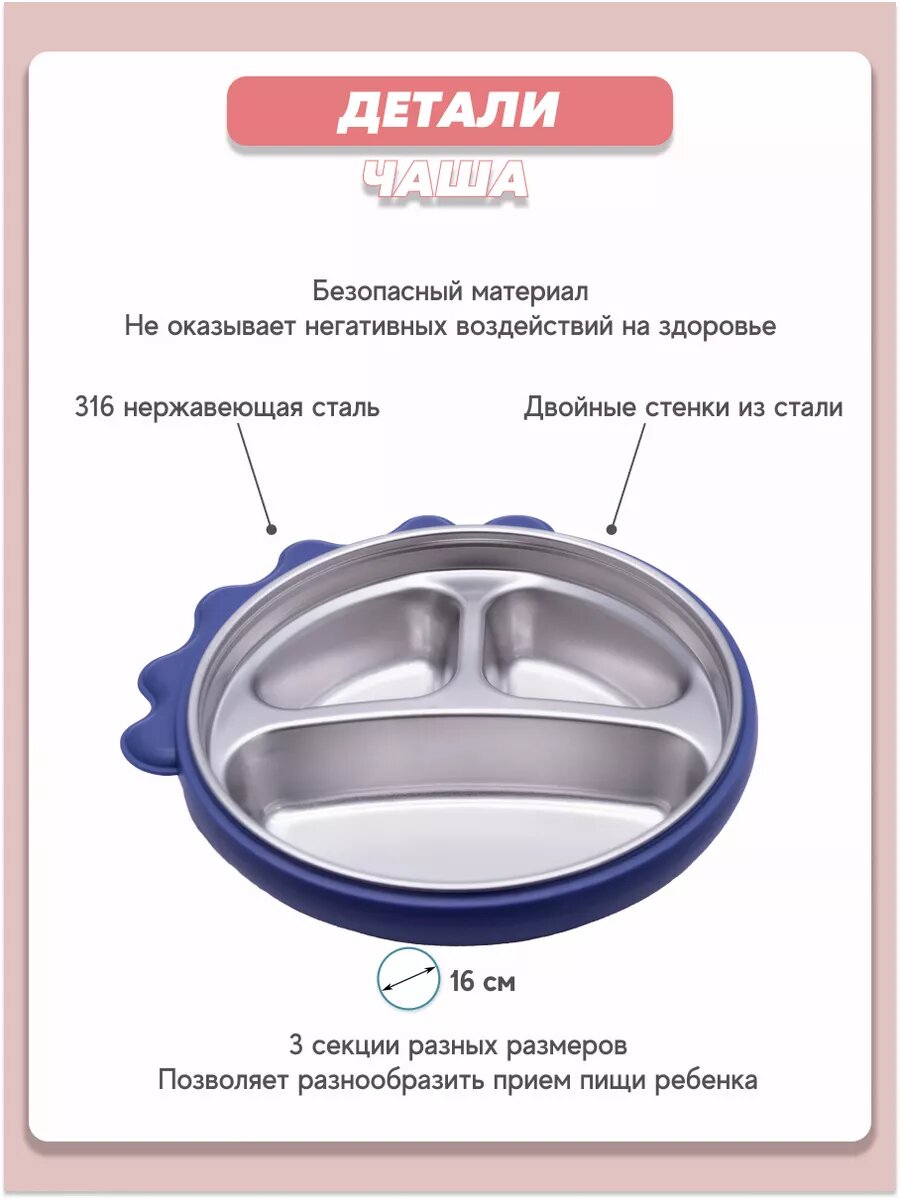 | Особенности | можно мыть в посудомоечной машине / можно стерилизовать / на присоске / нескользящее покрытие / тарелка с секциями |