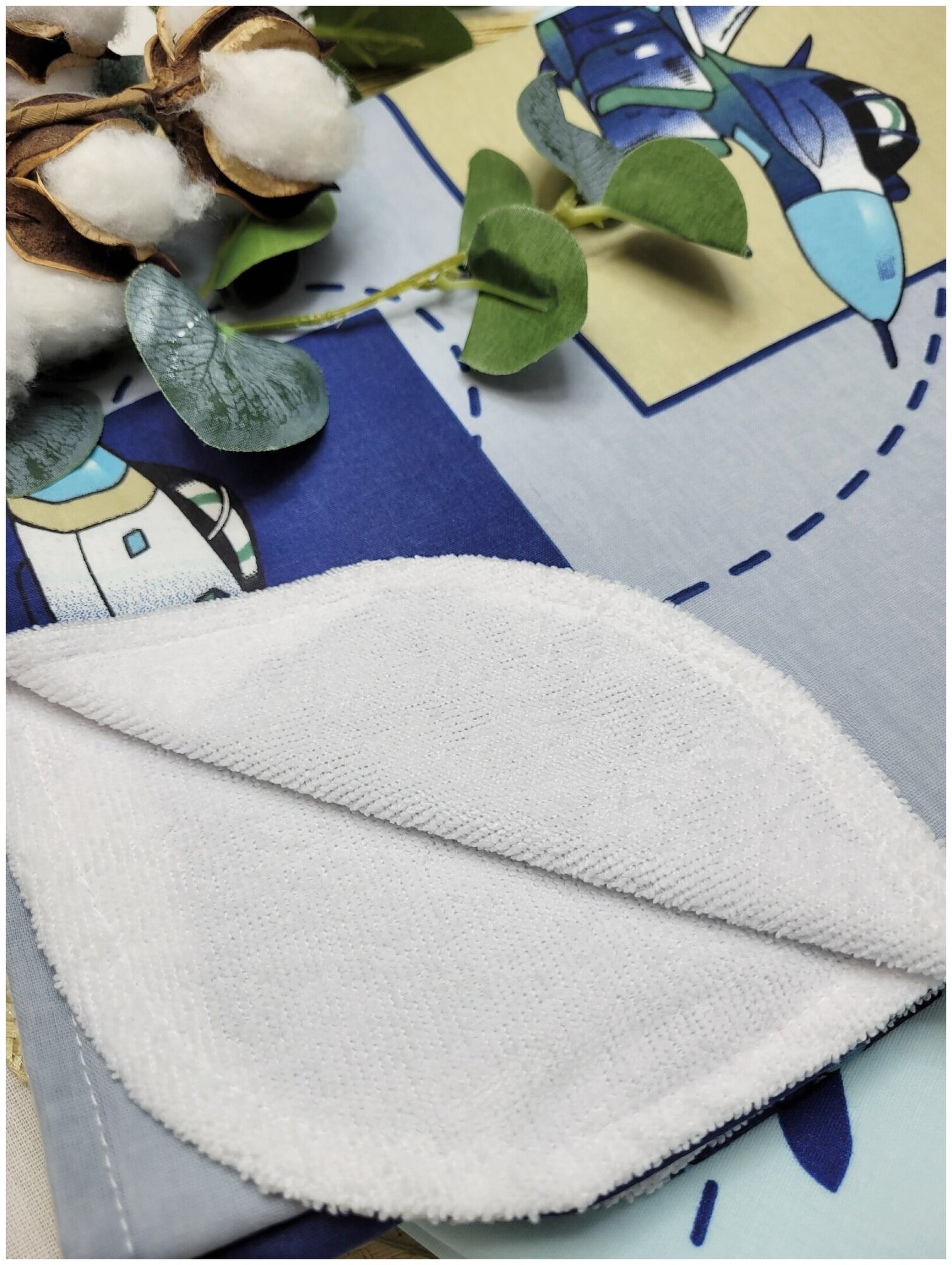 Пеленка текстильная многоразовая непромокаемая хлопок махра клеенка 68х80 см Owl&EarlyBird, набор 2 штуки