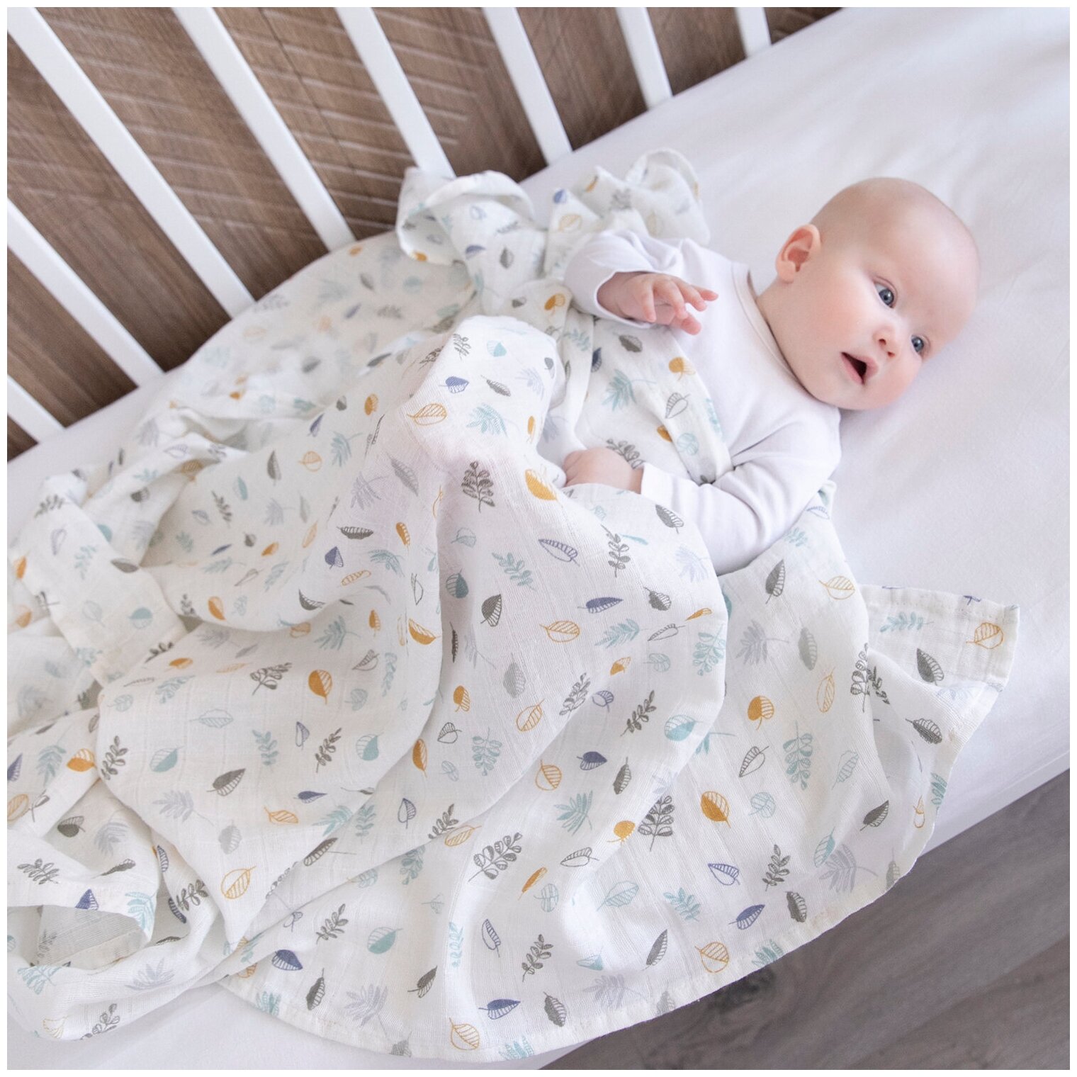 Пеленка муслиновая новорожденным детям белый фон с листочками 979 ₽