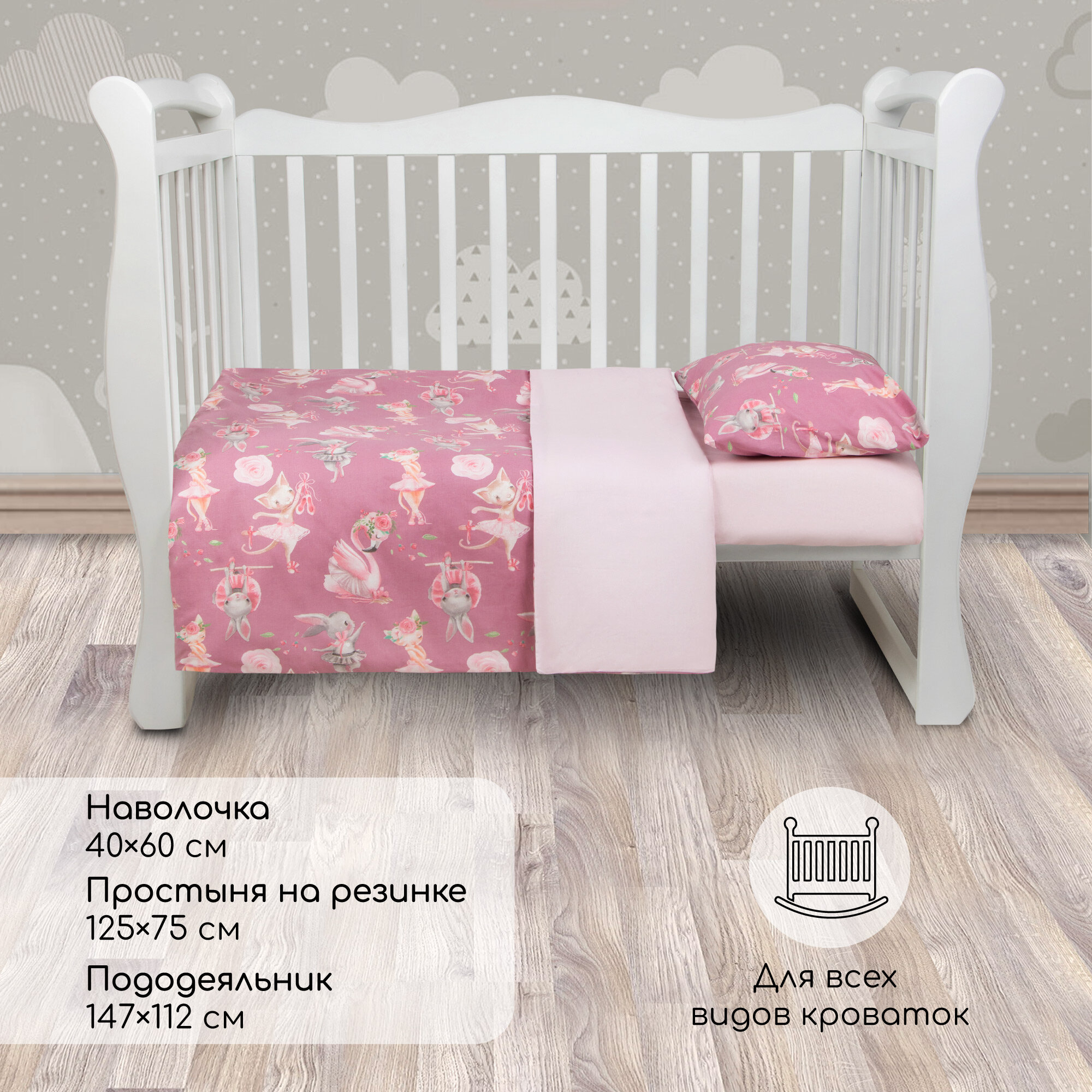 Комплект в кроватку 3 предмета AmaroBaby BABY BOOM Нежный Танец, розовый (поплин) 3 123 ₽