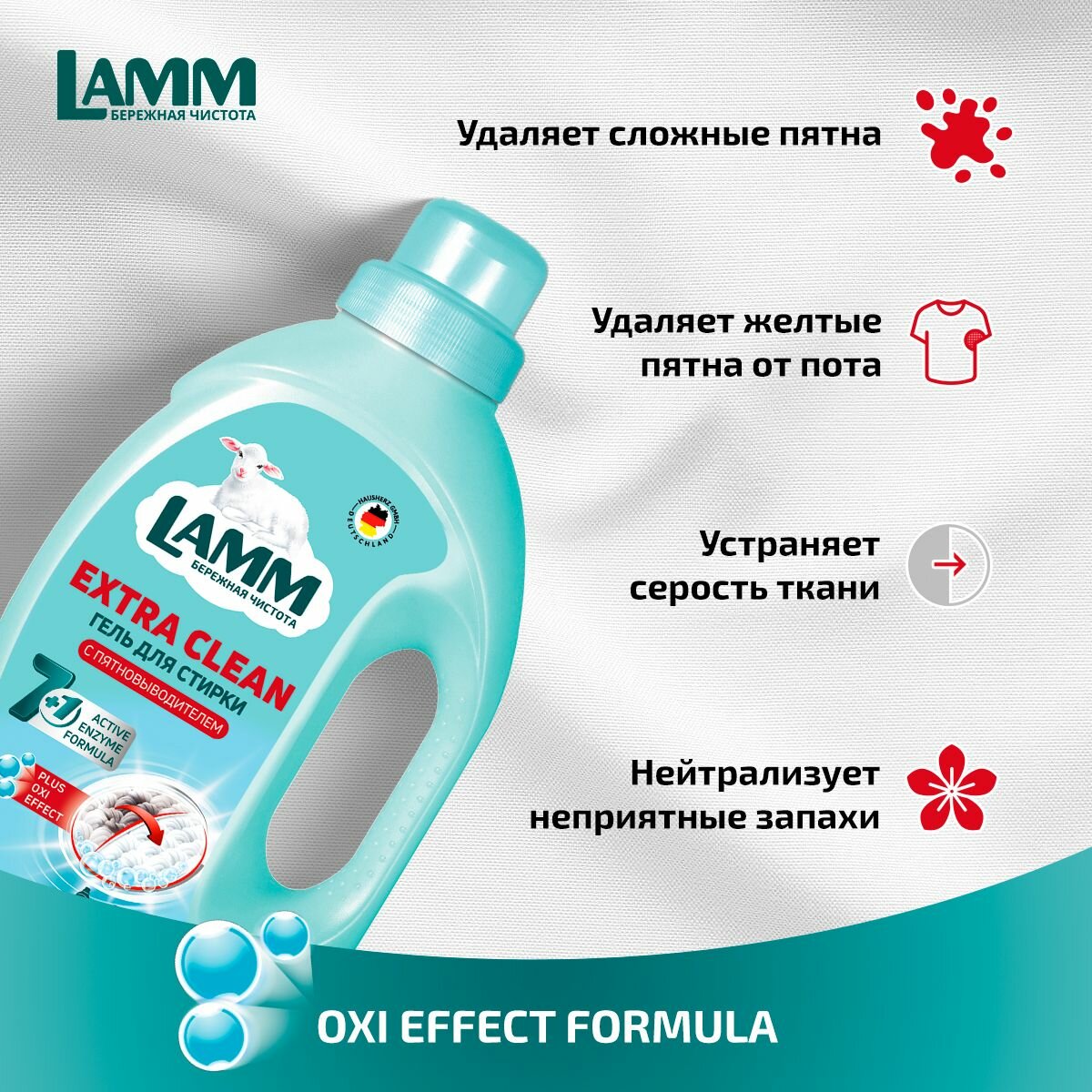LAMM Extra Clean гель для стирки белья с пятновыводителем бесфосфатный 16 стирок 1,04 л информация: