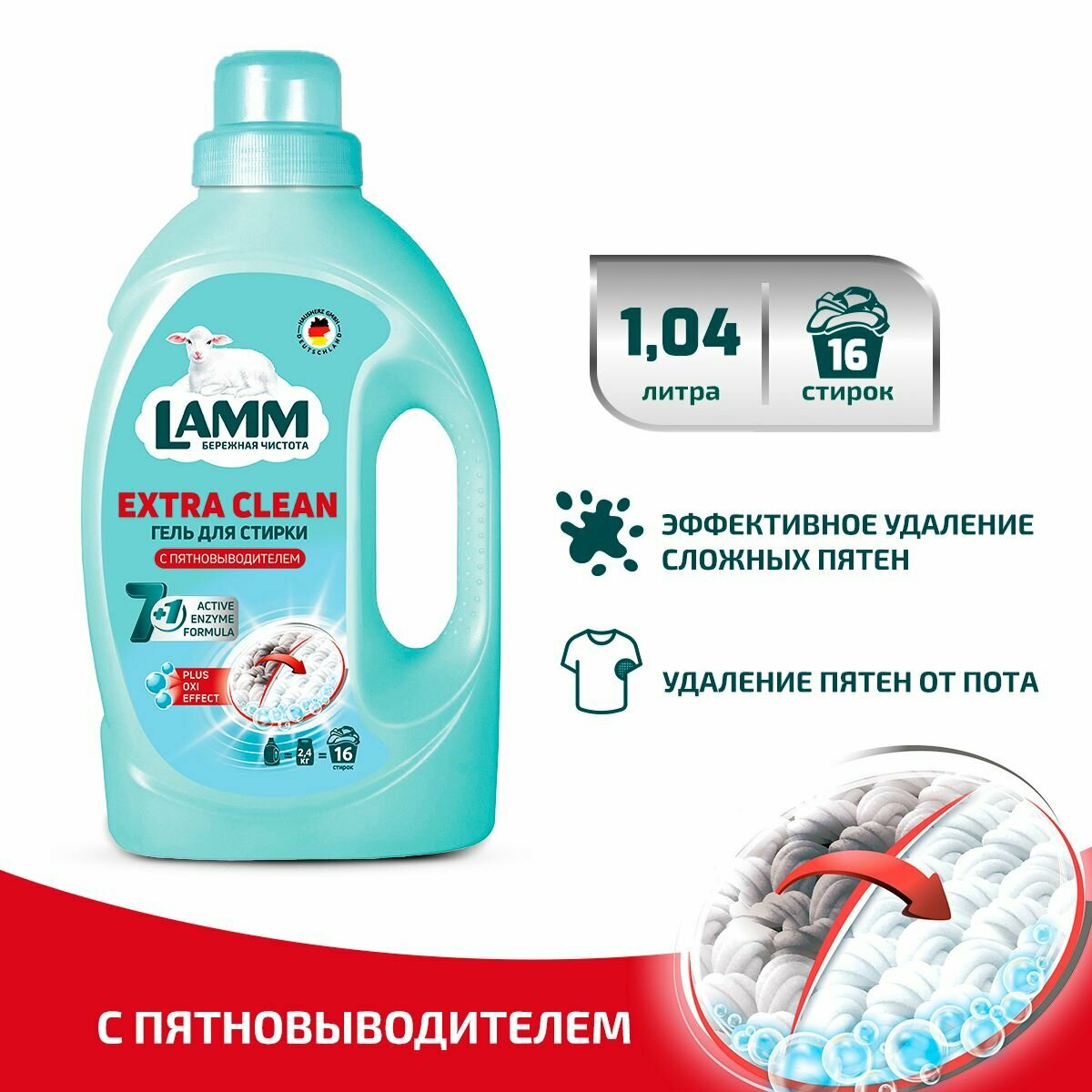 10 цен на LAMM Extra Clean гель для стирки белья с пятновыводителем бесфосфатный 16 стирок 1,04 л