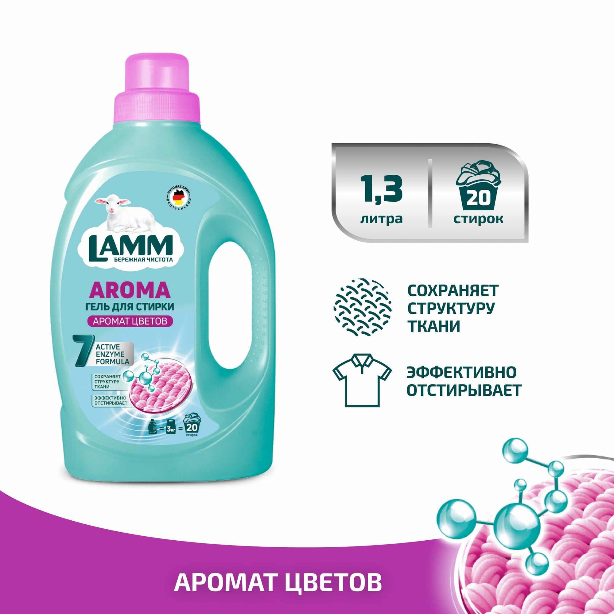 LAMM Aroma гель для стирки белого и цветного белья бесфосфатный 20 стирок 1,3 л информация: