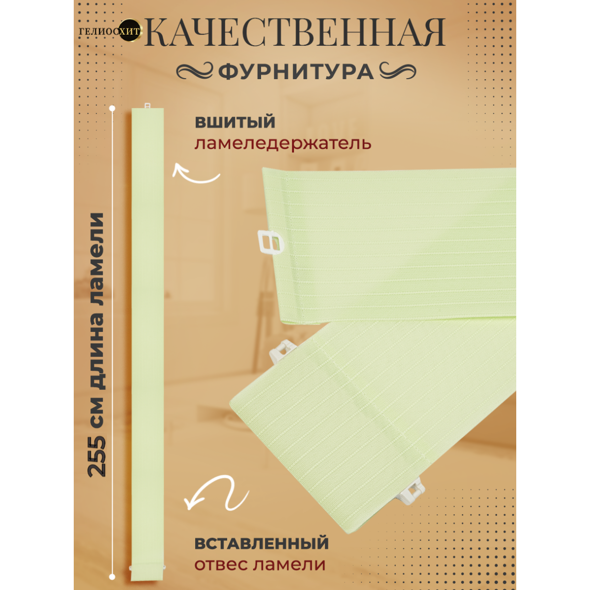 Ламели для вертикальных жалюзи 10 шт высотой 255 см лимонные, ткань Лайн, гелиосхит, карниз приобретается отдельно. 2 136 ₽