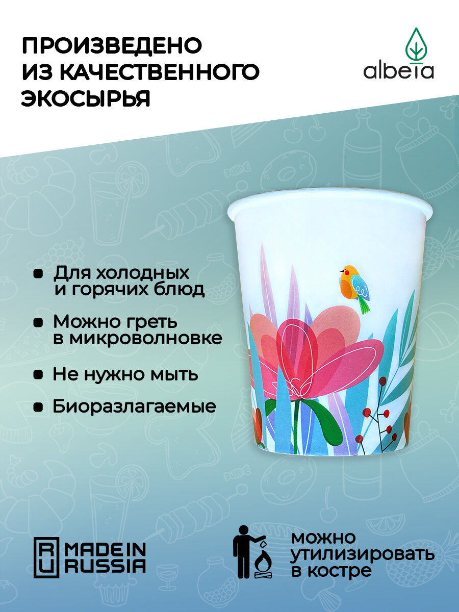Стаканы одноразовые бумажные для кофе 250 мл набор 50 шт, принт "Цветы" 360 ₽