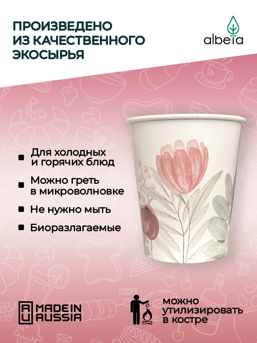 Стаканы одноразовые бумажные для кофе 250 мл набор 50 шт, принт "Цветы" 360 ₽