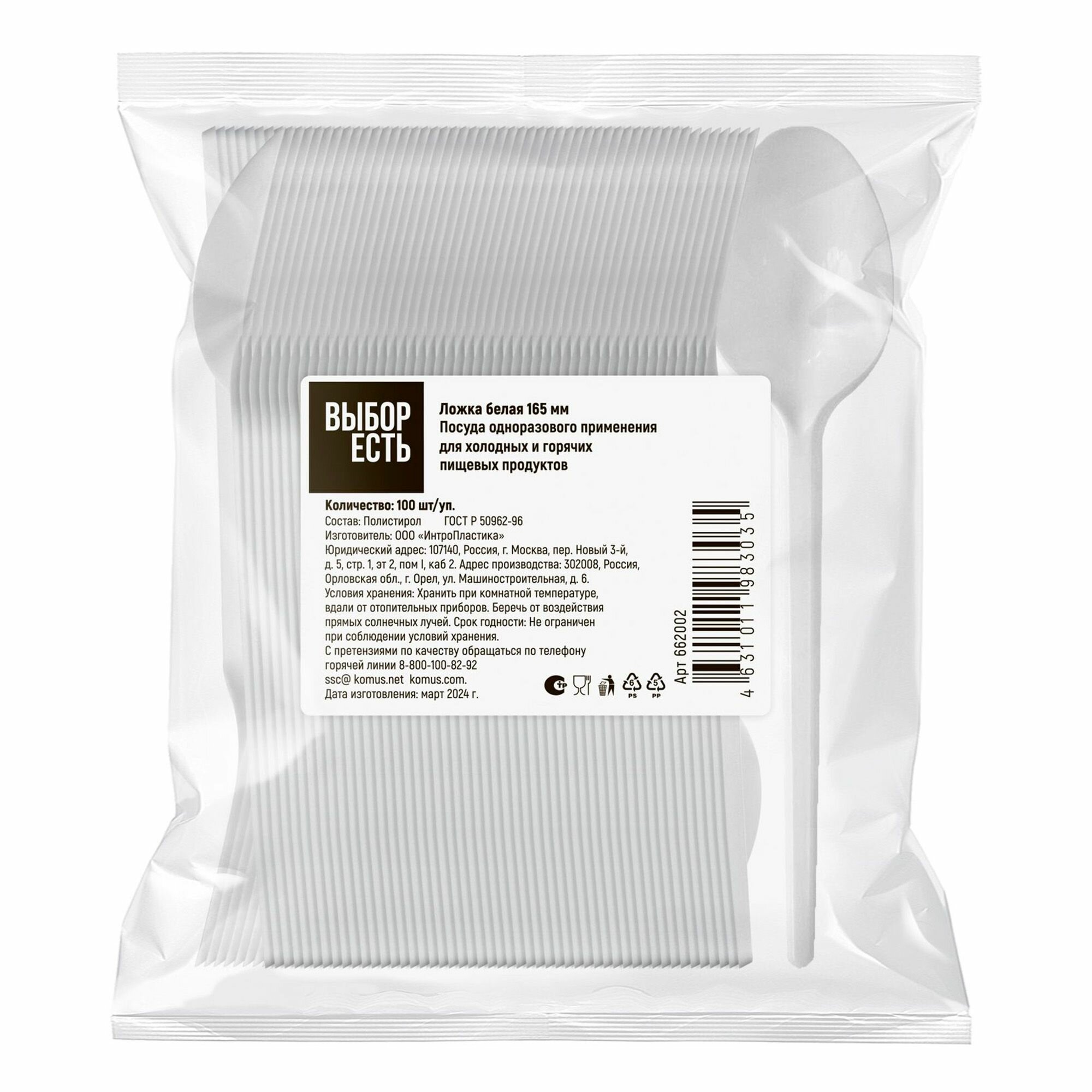 Ложки одноразовые, столовые, пластиковые, 100 штук, белые информация: