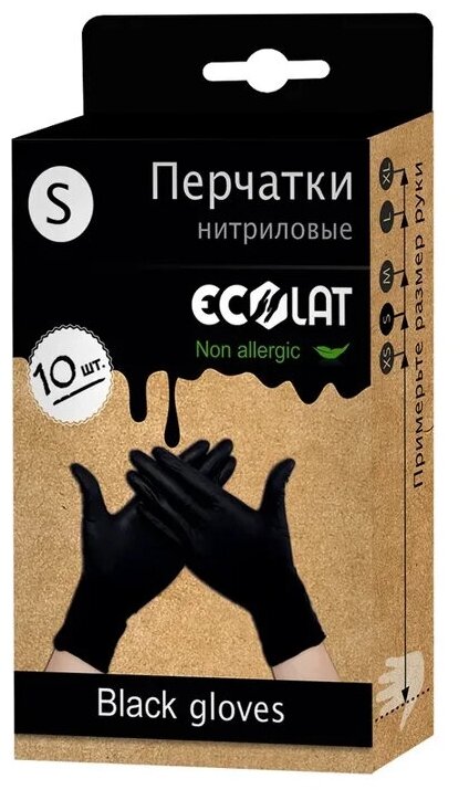 10 цен на EcoLat, Перчатки нитриловые, черные, размер S, 10 шт.