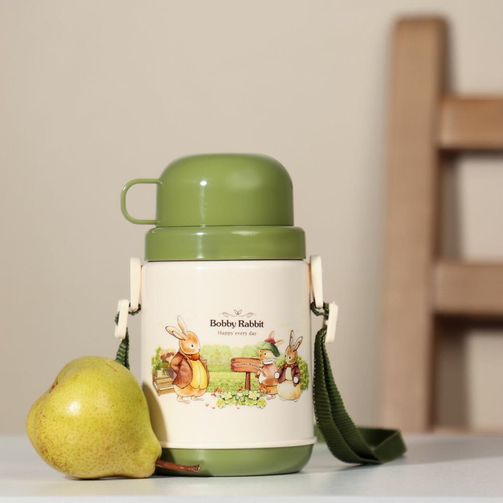 Термос детский с двухслойными стенками, бутылка с кружкой Зайчата, 400 мл, пластик информация:
