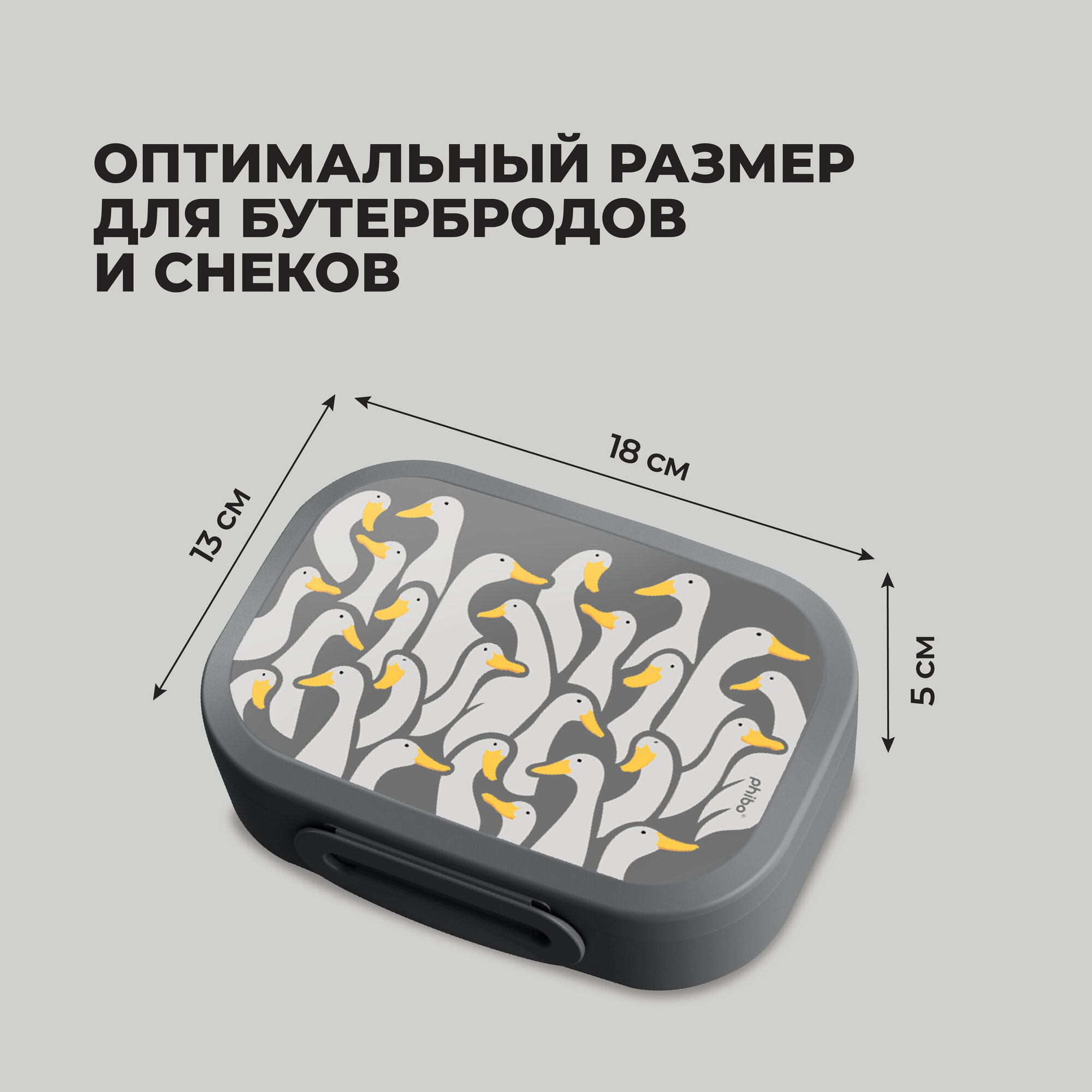 Отзывы на Контейнер для еды, перекусов, ланч-бокс с декором "Гуси" 980 мл, цвет серый