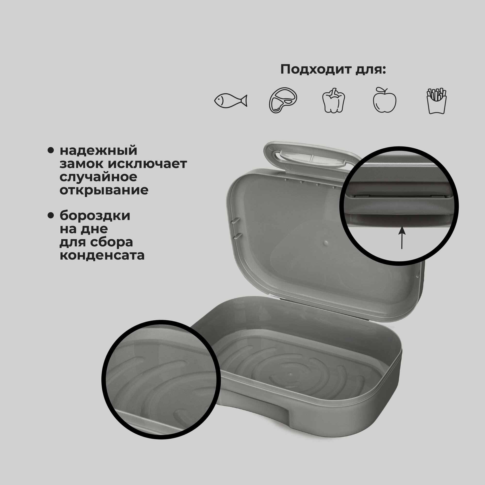 Контейнер для еды, перекусов, ланч-бокс с декором "Гуси" 980 мл, цвет серый информация: