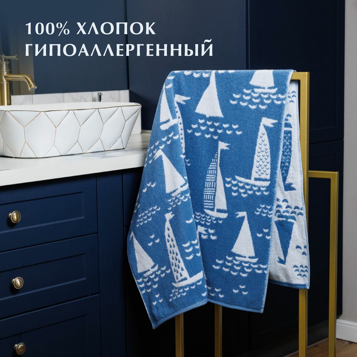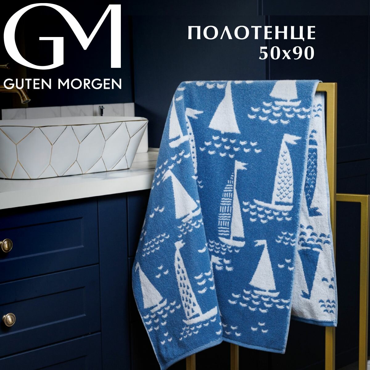Полотенце махровое, Guten Morgen, 30х50 см, рис. Сейлз, цвет: Голубой 260 ₽