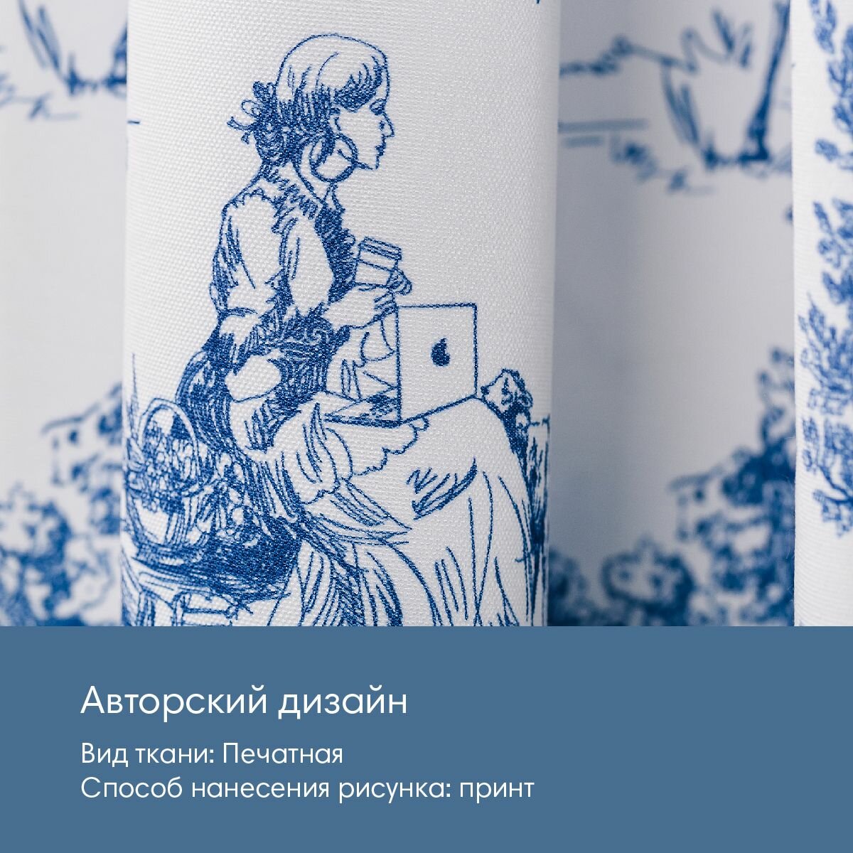 Штора для спальни и гостиной синяя и белая готовая интерьерная на шторной ленте 140х260 см, Klassika 2.0 3 990 ₽