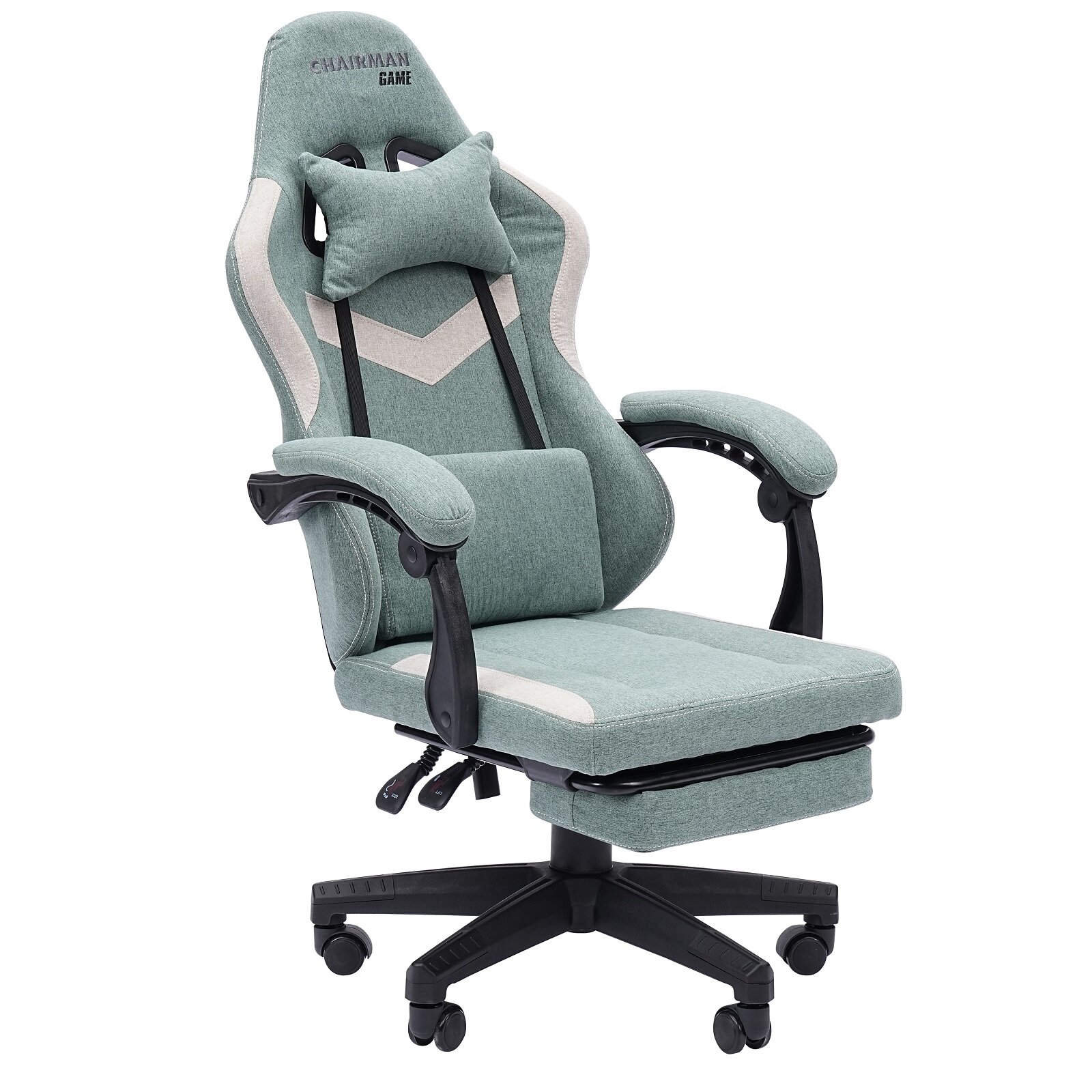 Игровое компьютерное кресло CHAIRMAN CH26 с выдвижной подставкой для ног, ткань, зеленый информация: