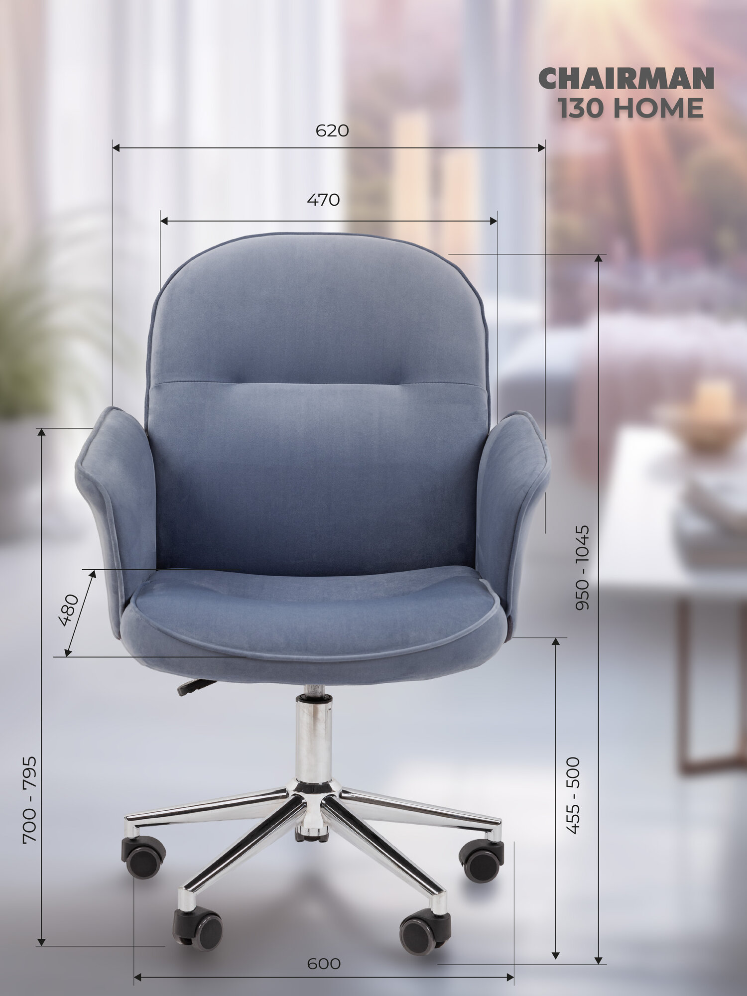 Компьютерное кресло для дома и офиса CHAIRMAN HOME 130, ткань велюр, голубой 10 790 ₽