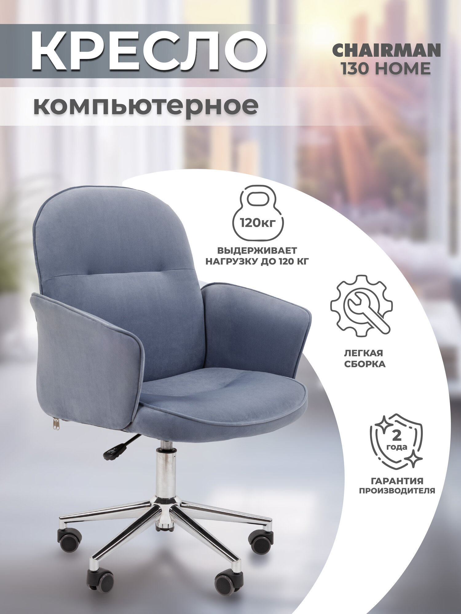 Компьютерное кресло для дома и офиса CHAIRMAN HOME 130, ткань велюр, серый 9 999 ₽