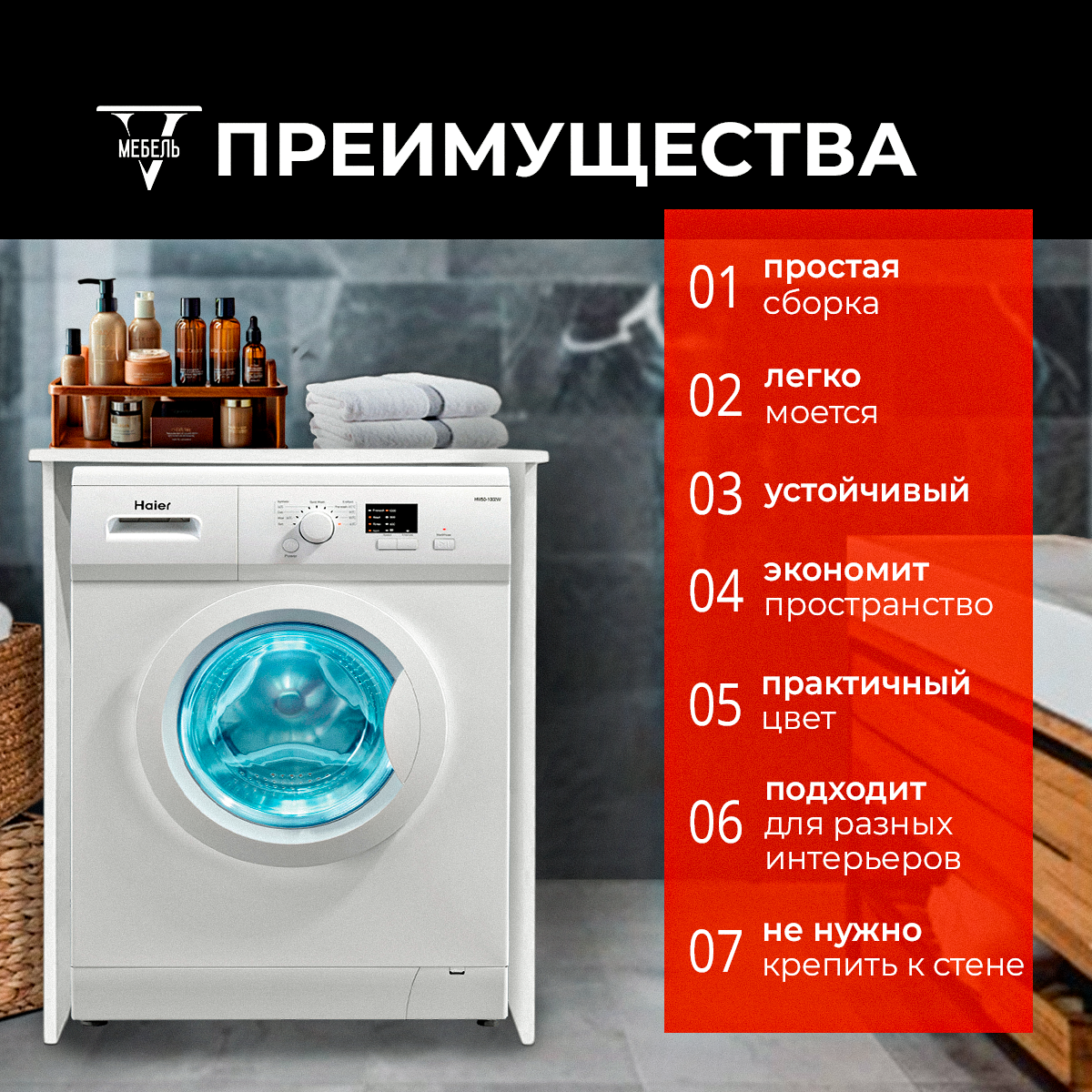 Стеллаж для стиральных машин и сушильных машин V мебель, широкий, белый 5 000 ₽
