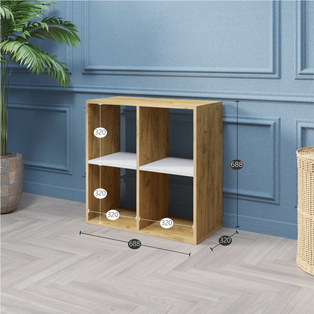 Стеллаж Velardy кубикус, 69x32x69см, белый+дуб крафт золотой информация:
