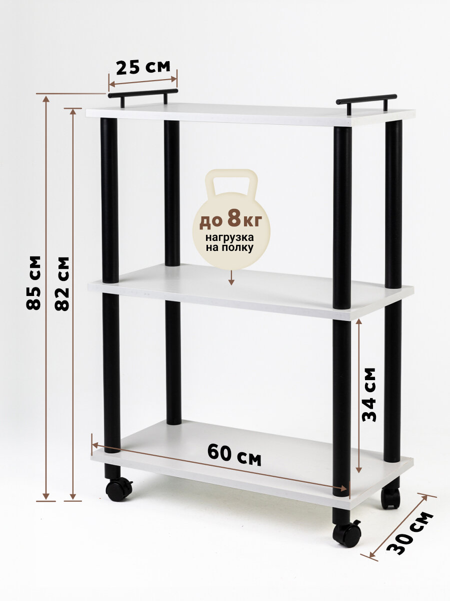 10 цен на Стеллаж для кухни GASTRORAG 0770/3 на колесиках с ручками, этажерка напольная, тележка косметологическая Гастрораг, полка ЛДСП, 3 полки, размеры 34 х 30 х 82 см