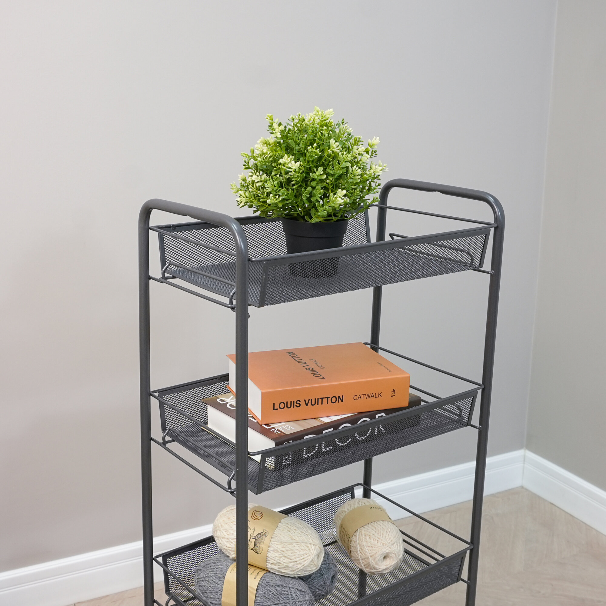| Дополнительная информация | материал: стальная труба, просечно-вытяжной лист, проволока, пластик, полимерное покрытие; вес этажерки – 3.4 кг |