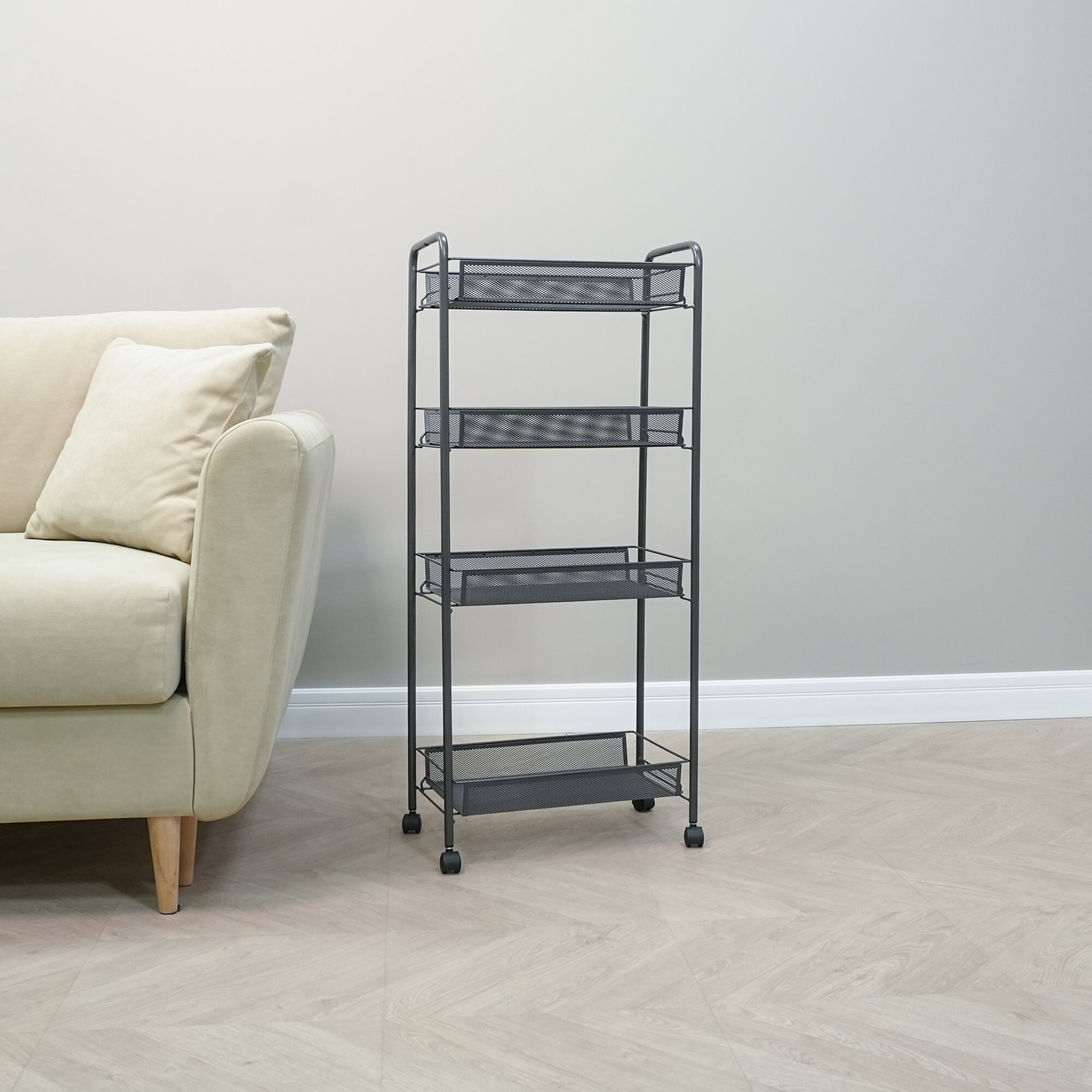 Этажерка ЗМИ Ладья 24К для кухни на колесиках металлическая узкая, графит 2 462 ₽