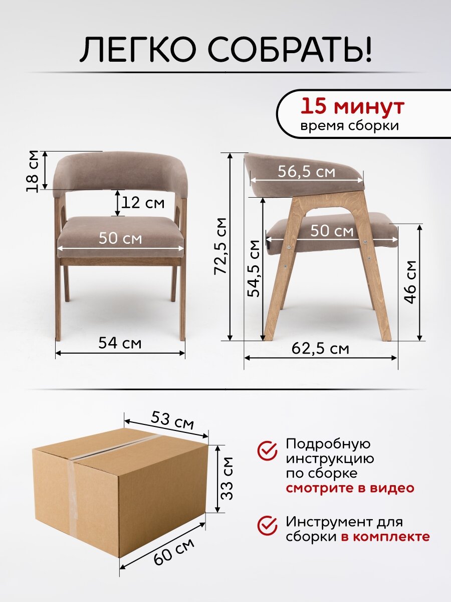 Стул кресло ZASIDELIS кайф мягкий для кухни дома и офиса темно бежевый/коричневый, из велюра, 63x56x72 см, до 130кг 10 500 ₽