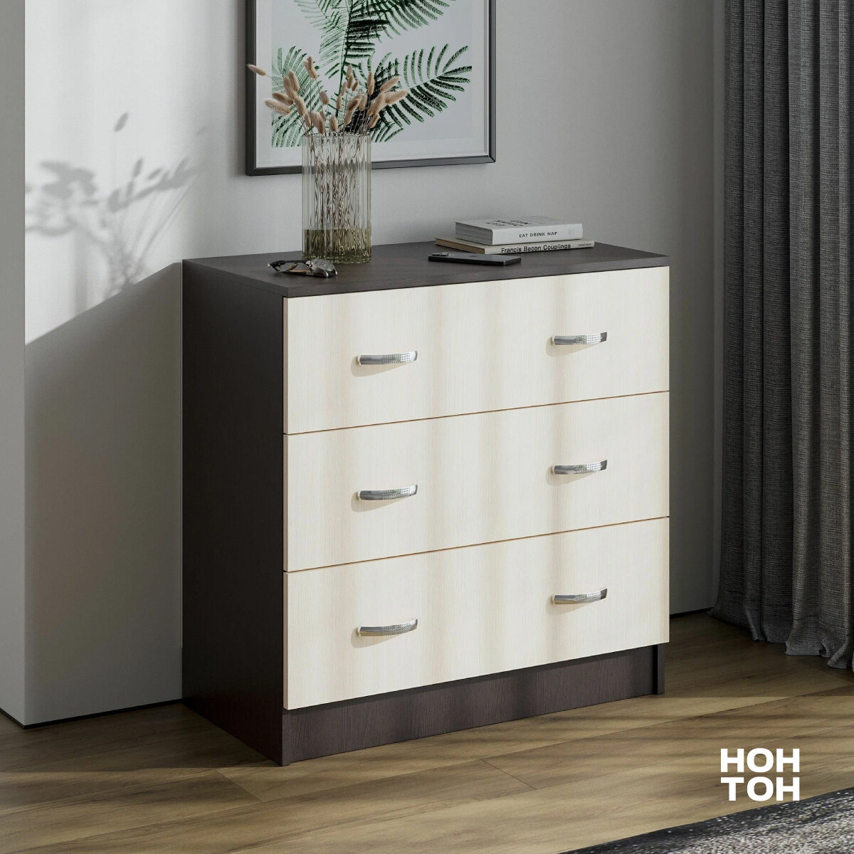 Комод Ронда КМ-02 с 3 выдвижными ящиками, Беленый дуб/Венге