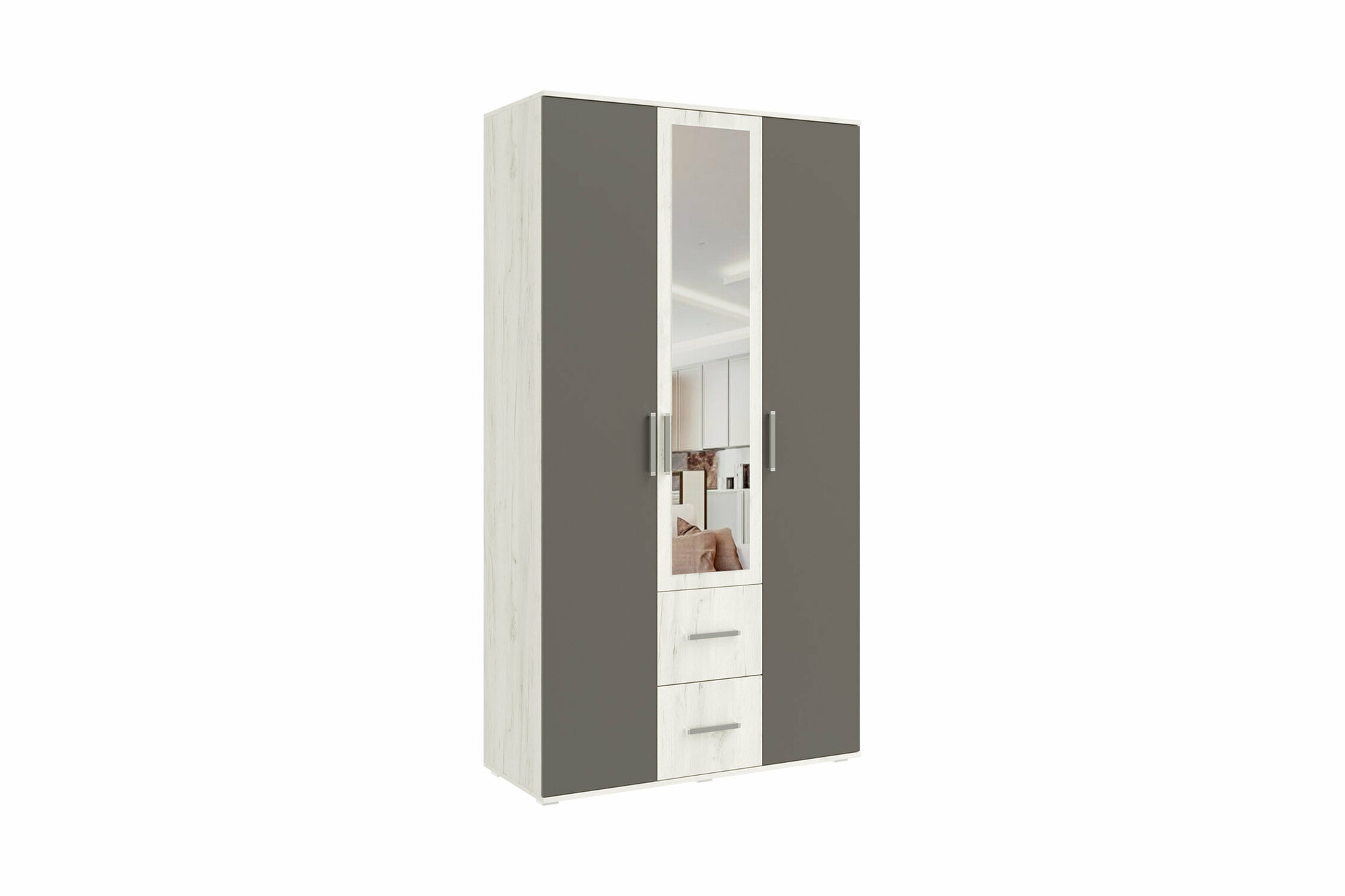 10 цен на Шкаф для одежды с зеркалом Нонтон Фиеста New, дуб крафт белый / графит 120 см