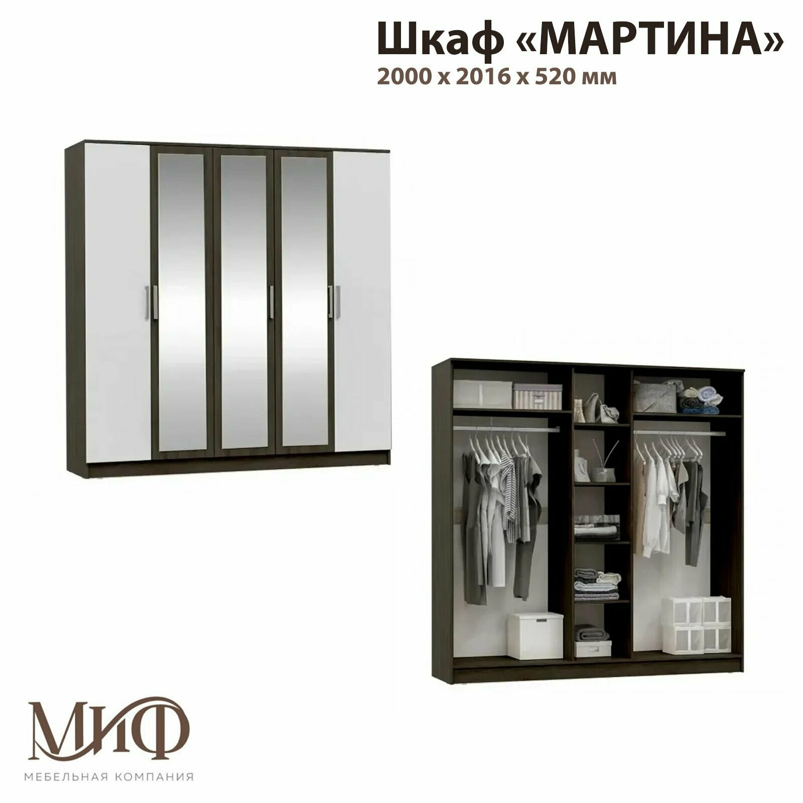 Шкаф для одежды 5-дверный Мартина с зеркалом Белый, венге ЛДСП