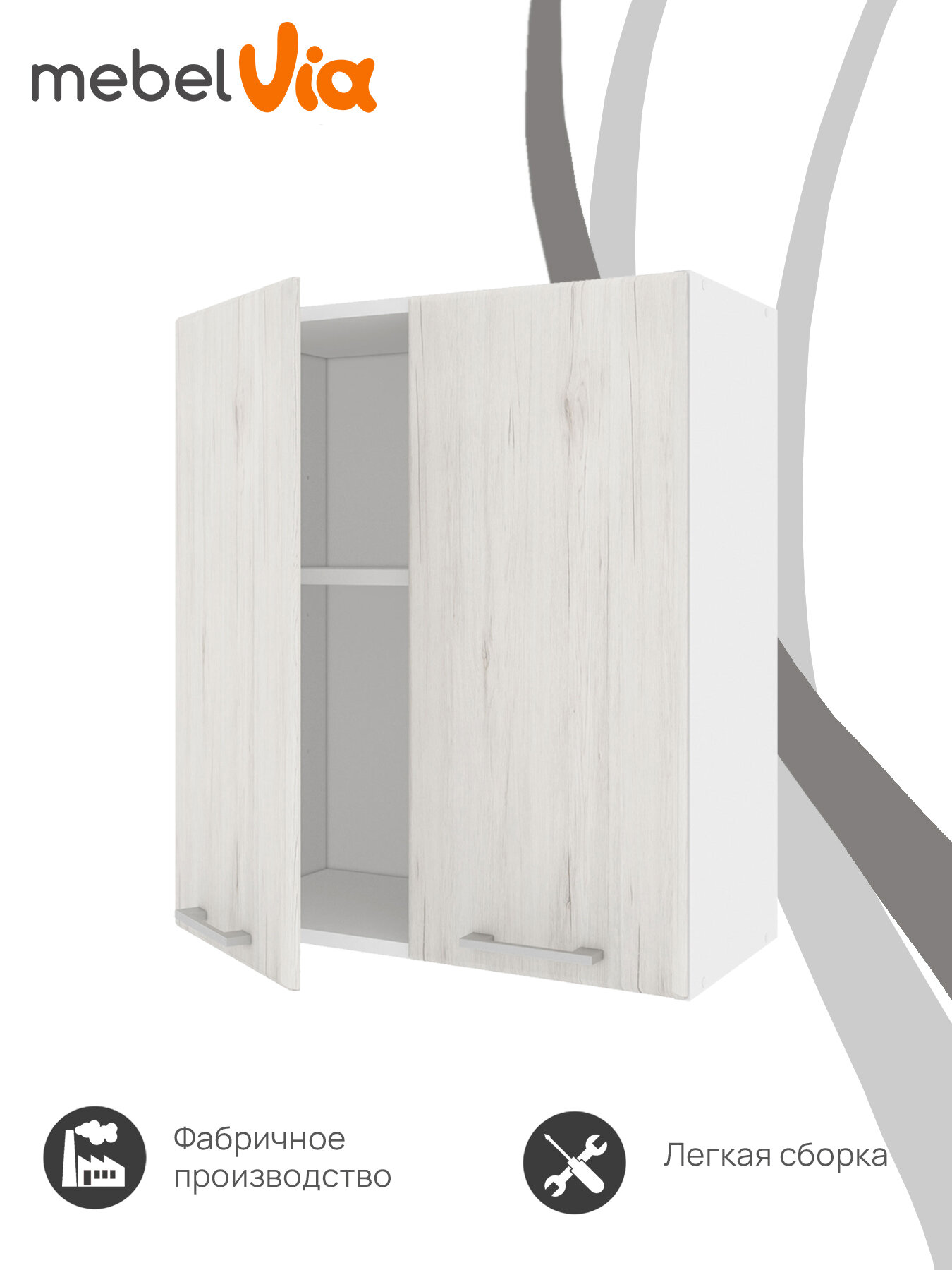Шкаф навесной 60 Сосна. Кухонный модуль, распашные двери, фасад МДФ, корпус ЛДСП, MebelVia информация: