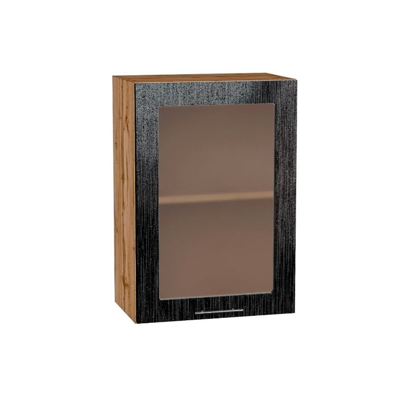 Кухонный шкаф навесной, Кухня Валерия, ШВ500 со стеклом, Вотан / Дождь Черный металлик информация: