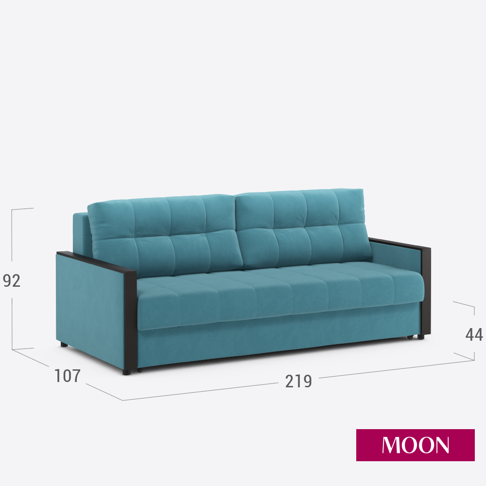 Диван-кровать раскладной еврокнижка MOON FAMILY 135 велюр бирюзовый, Независимый пружинный блок , 219х107х92 см информация: