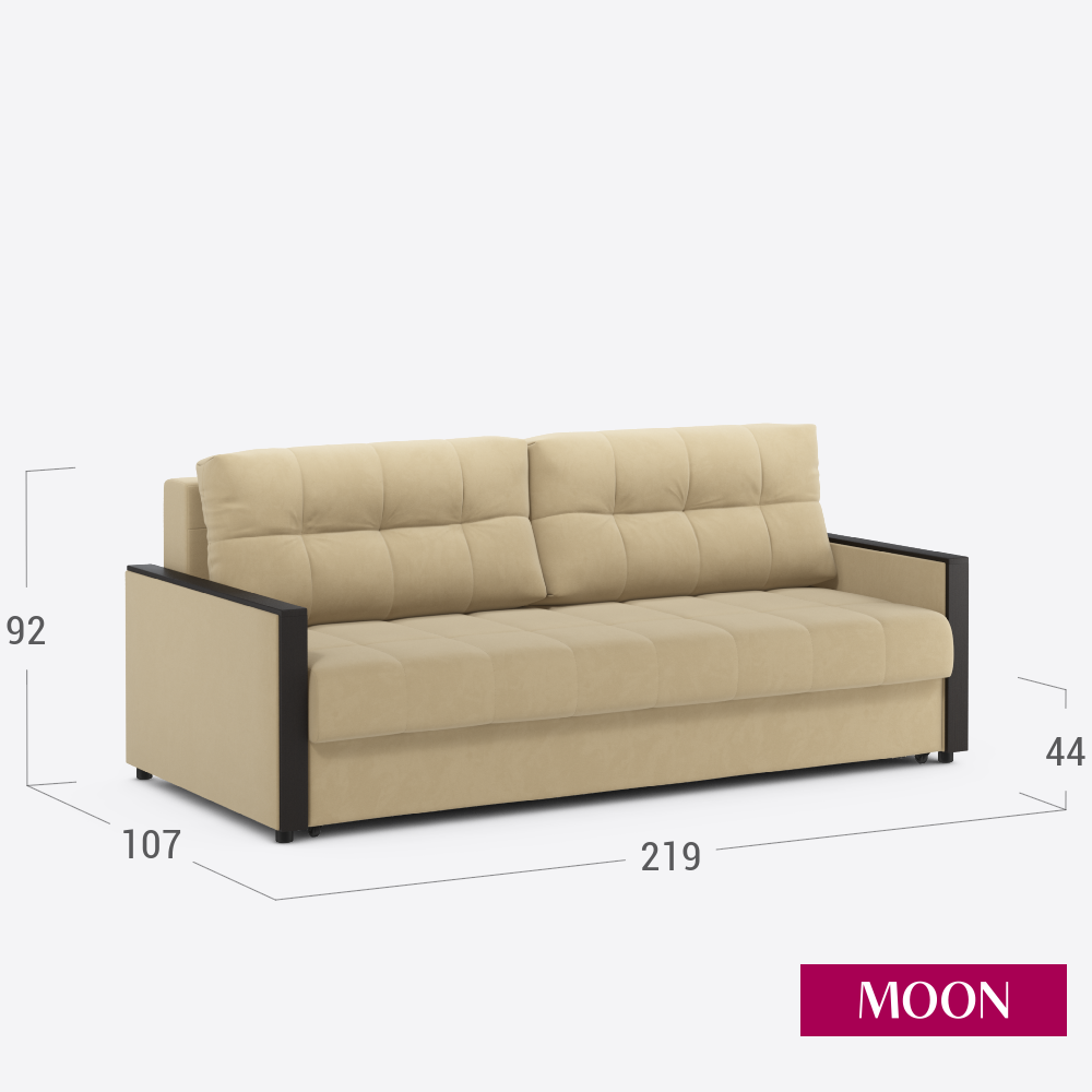 Диван-кровать раскладной еврокнижка MOON FAMILY 135 велюр светло-бежевый, Независимый пружинный блок , 219х107х92 см информация:
