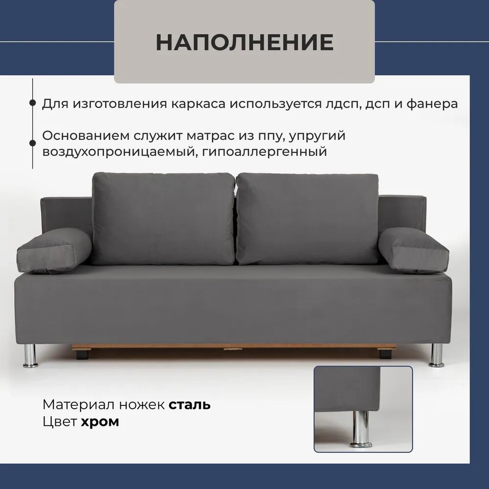 Диван прямой "Морис" серый, велюр, двуспальный, Еврокнижка, Диван 24 информация:
