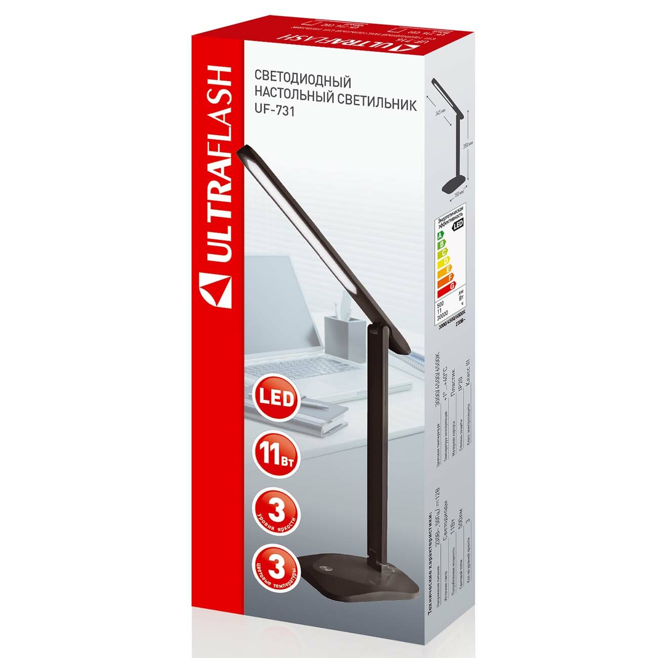 Светильник настольный UF-731 С02 черный (LED 11 Вт, 3 уровня яркости) Ultraflash информация: