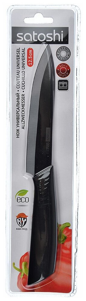 Нож кухонный SATOSHI Бусидо керамический 12,5 см, черный, нож универсальный