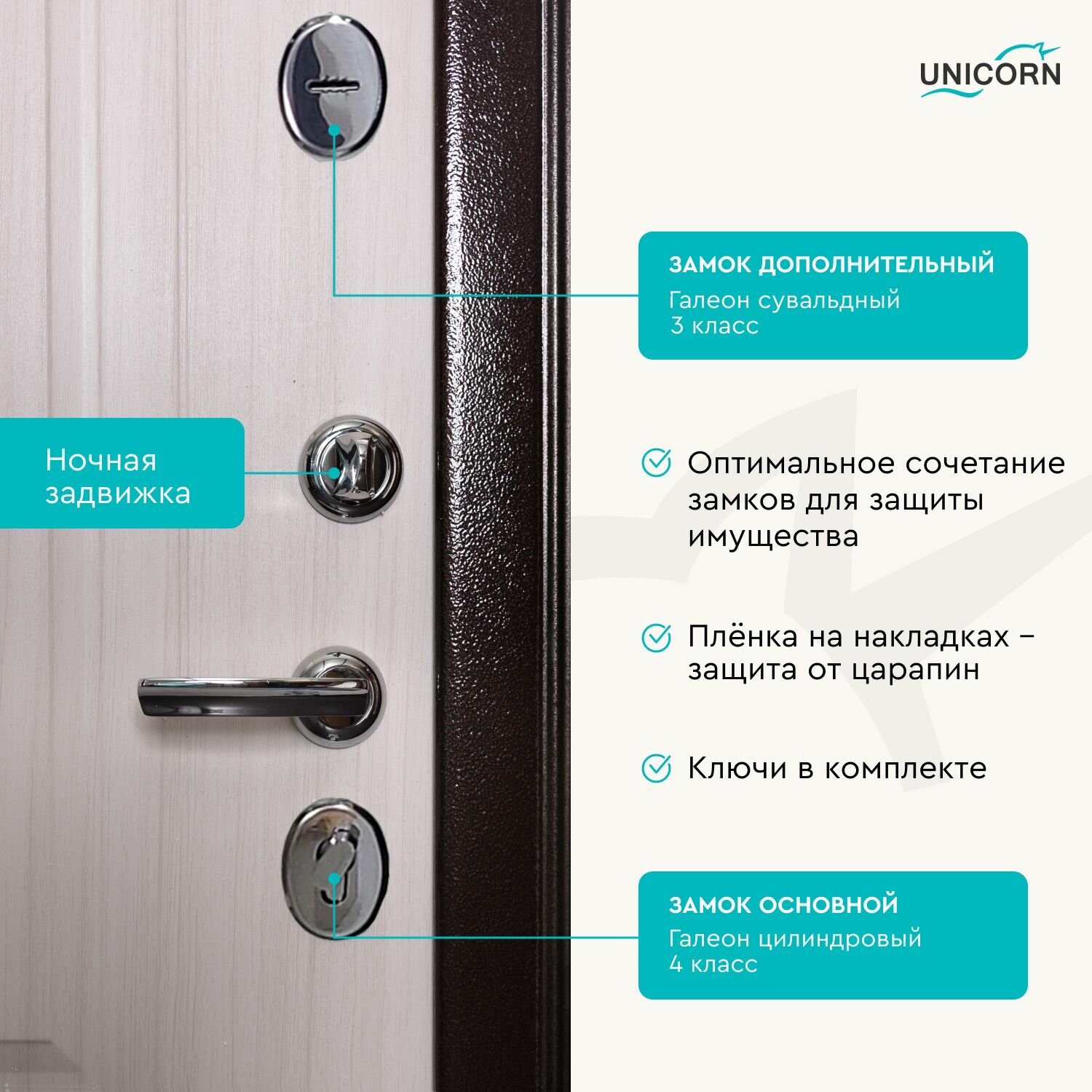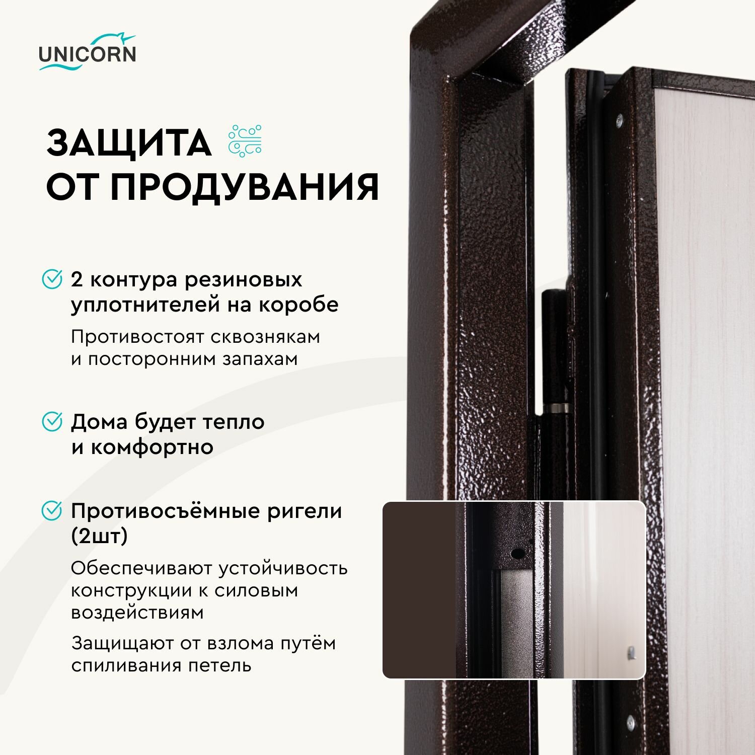 10 цен на Дверь входная металлическая в квартиру Unicorn Apartment 970х2050 правая, антивандальное покрытие, два контура уплотнителя, коричневый/светло-бежевый