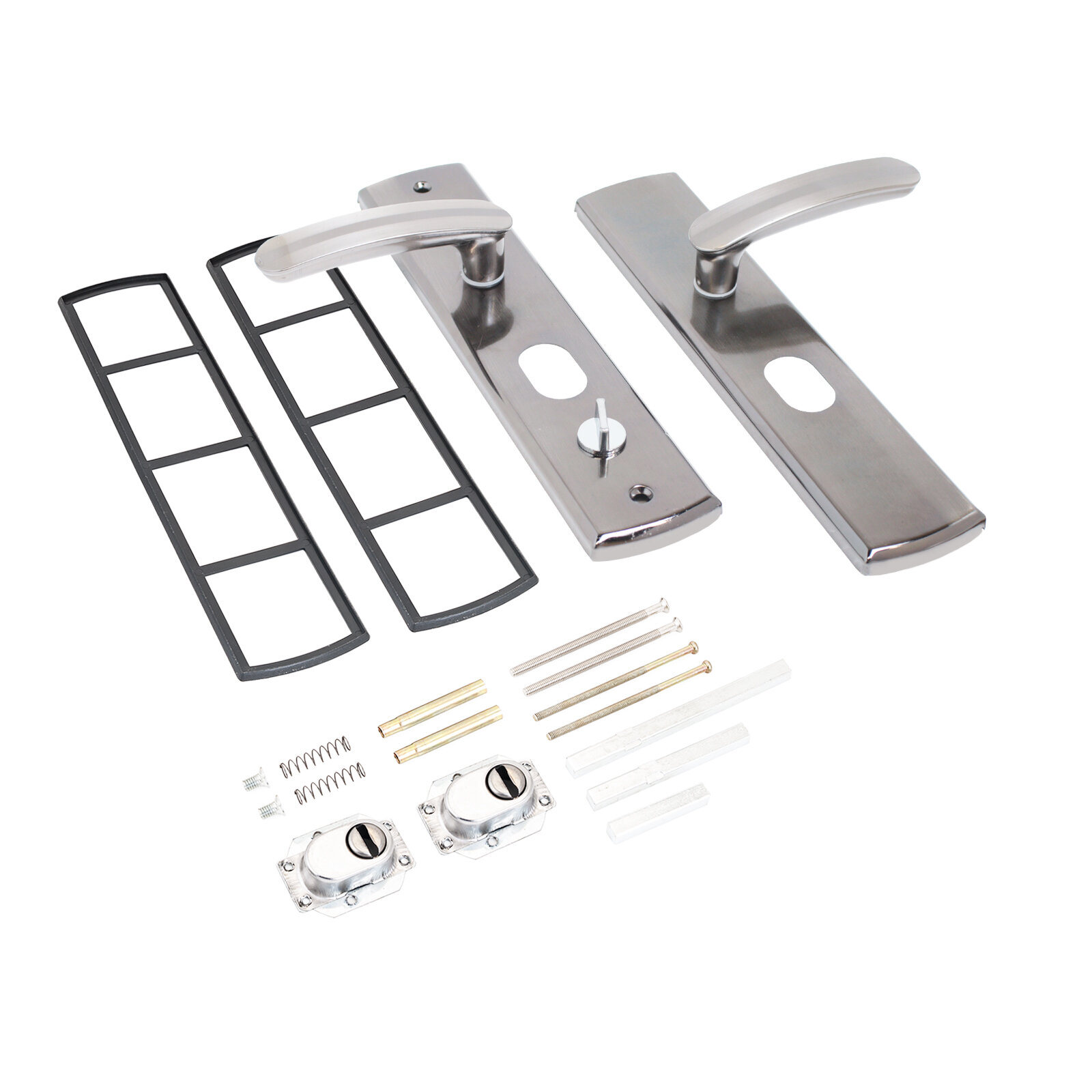 Ручка дверная межкомнатная хром блестящий с защелкой, заверткой и ключами комплект