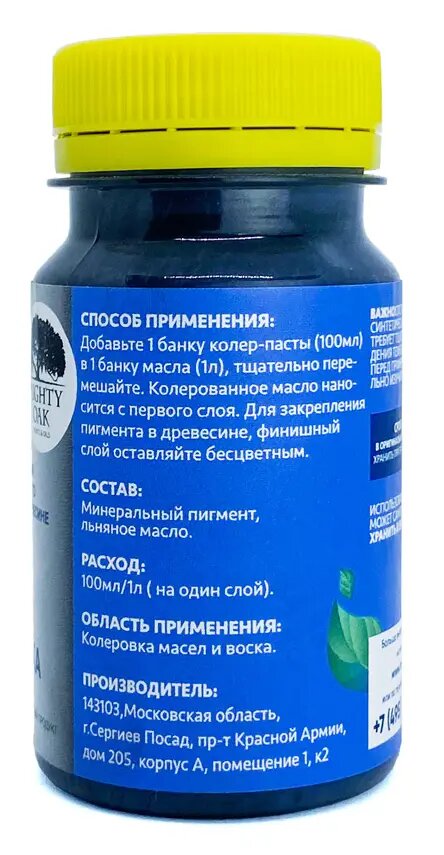 | Дополнительная информация | способ применения: добавьте и смешайте колер - пасты с желаемым составом, в соответствии с рекомендованным количеством для создания необходимого цвета. Возможно получение любых желаемых оттенков. Рекомендуется использовать максимум 40% пигментной пасты от общего веса, в ином случае время сушки масла может существенно увеличиться |