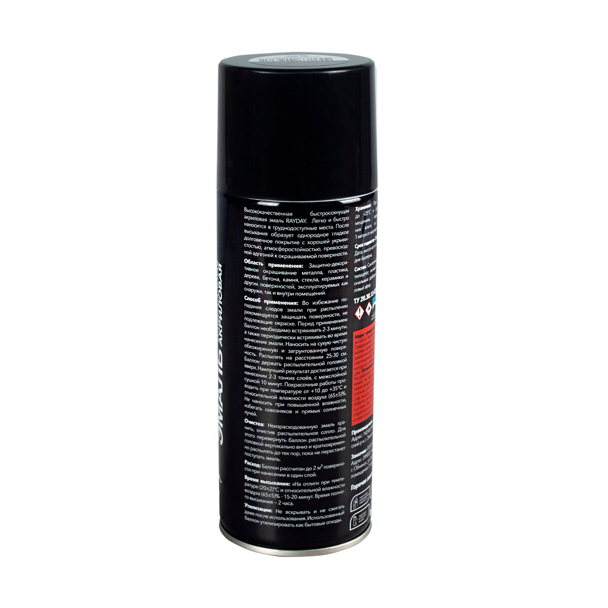 Аэрозольная акриловая краска Rayday RD-077, глянцевая, 520 мл, черная информация: