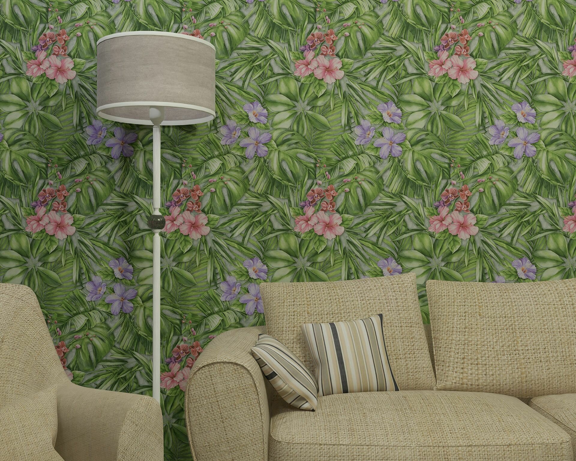 Обои бумажные с перламутром Брянск "Джунгли 4", зеленый информация:
