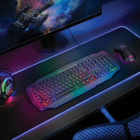 Клавиатура проводная DEFENDER Ultra HB-330L, комплект 3 шт., USB, 104 клавиши, с подсветкой, черная, 45330 2 700 ₽
