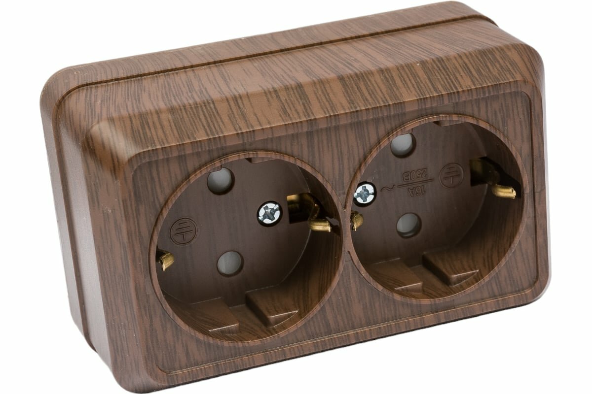 Розетка двойная открытой установки Ладога сосна с заземлением 16 А IP20