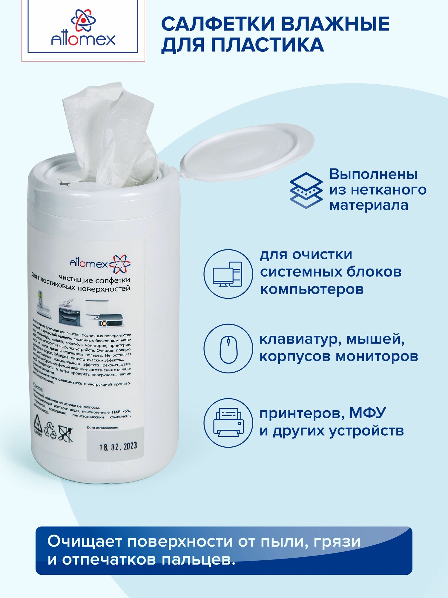 Чистящие салфетки безворсовые влажные для протирки ноутбука, компьютера, телевизора и пластиковых поверхностей 100 шт. информация: