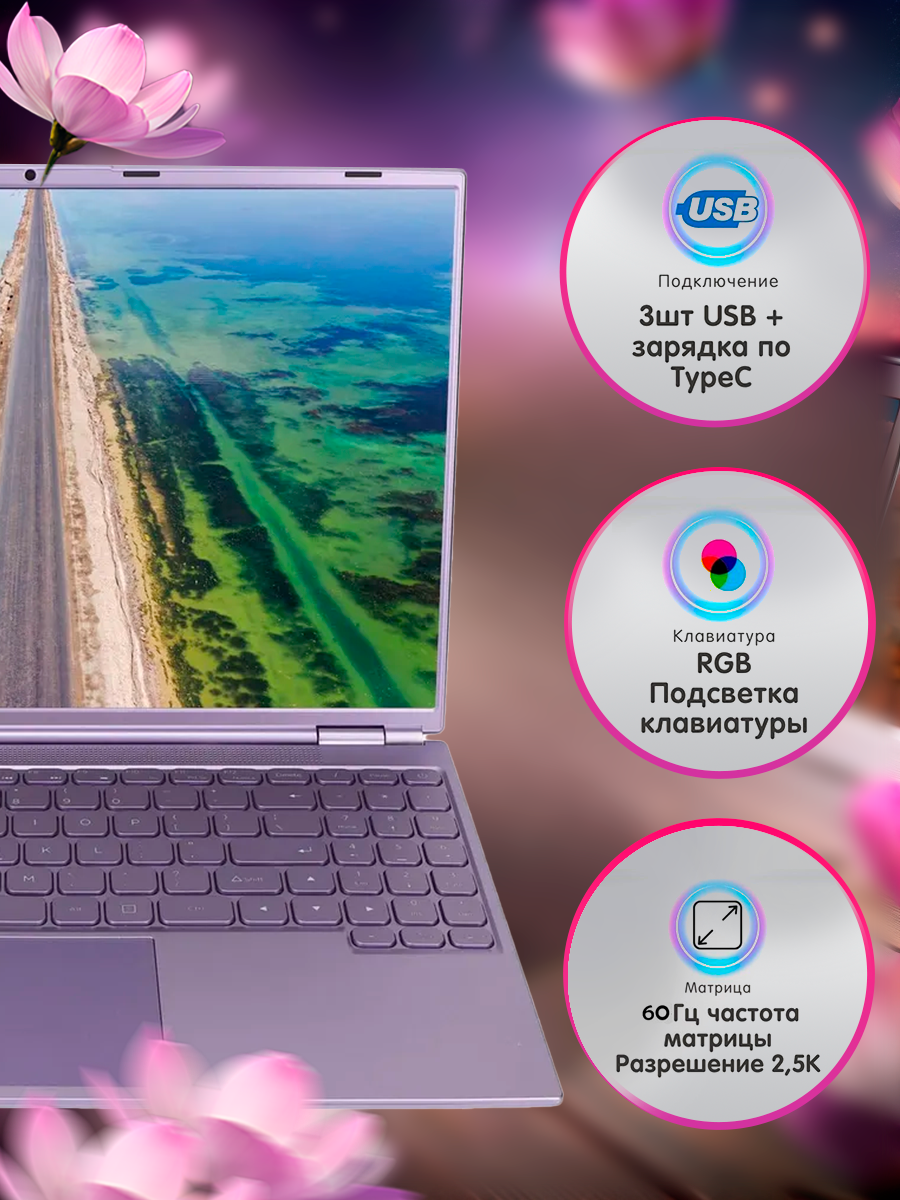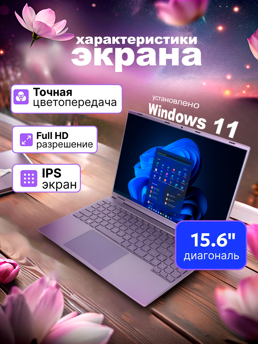 Ноутбук для работы и учебы iYon W19 PRO 16+512 ГБ ( 15.6" дюм ), фиолетовый информация: