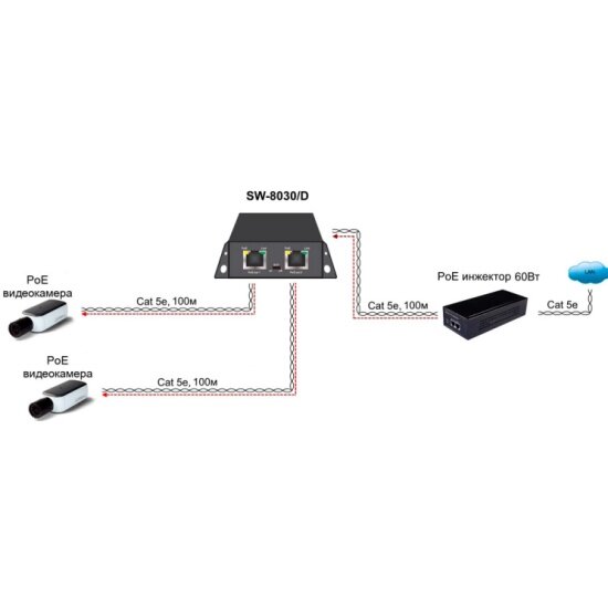 Коммутатор/удлинитель PoE Osnovo SW-8030/D информация: