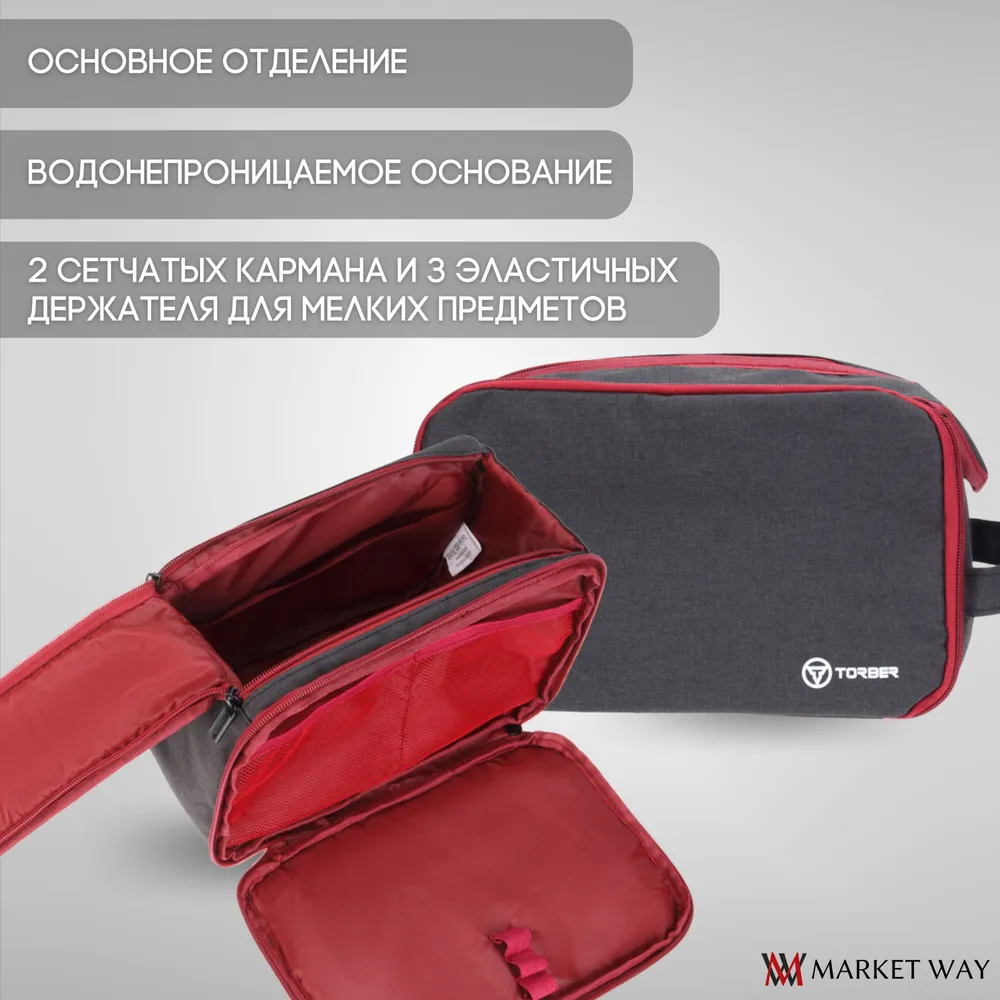 Несессер TORBER, дорожный, чёрный/бордовый, полиэстер 300D, 6 л, T010-BRD