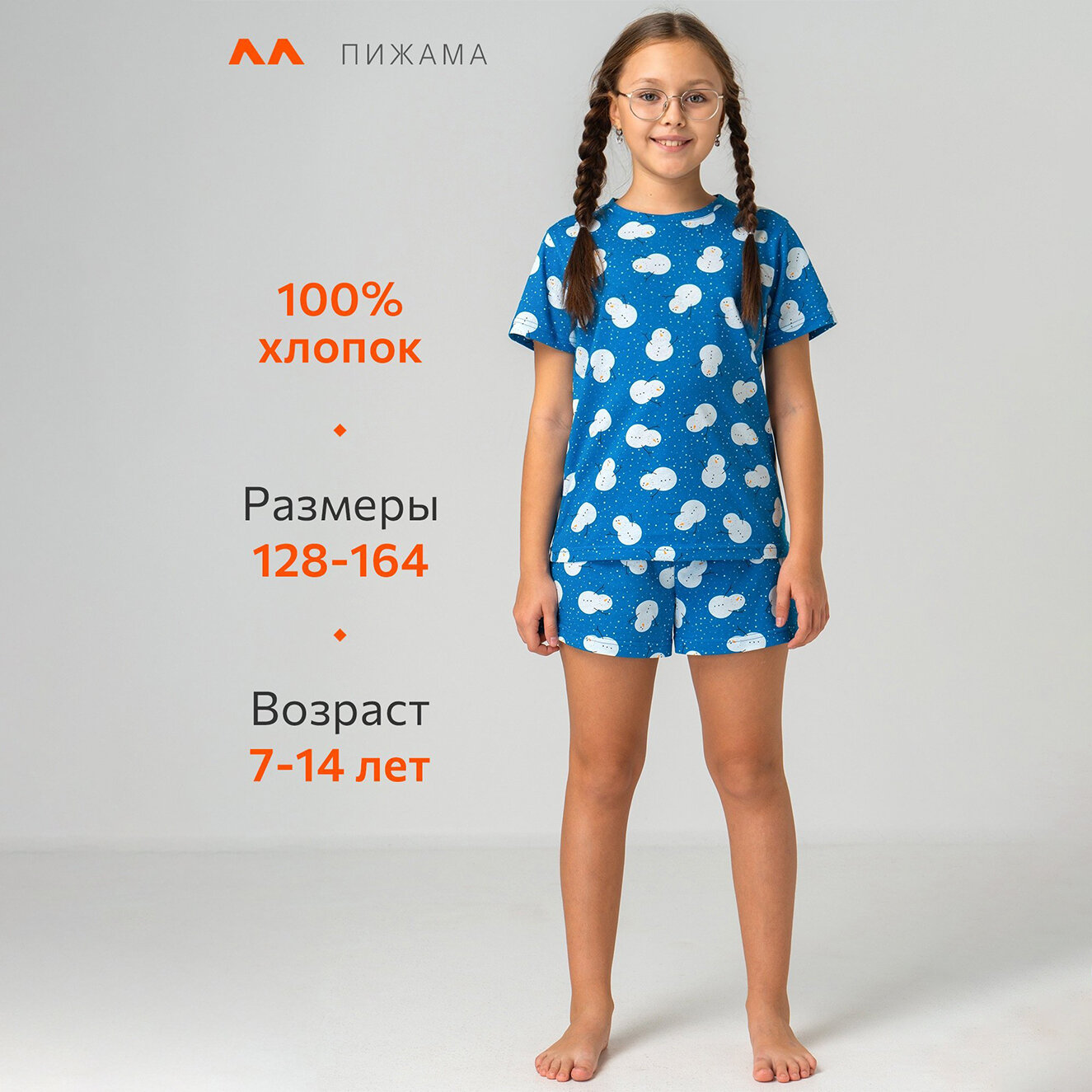 10 цен на Пижама с шортами новогодняя детская хлопок Happyfox HF2423SP снеговики.на.синем 164